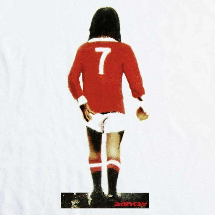 This Banksy tee features the anonymous grafitti artist’s piece featuring football legend George Best scratching his arse. Has a small red Banksy tag at the bottom of the piece. This is a great tee whether you’re a fan of the greatest street artist in the world, or a fan of Manchester United legend Gerge Best (he also played for Los Angeles Aztecs, Fulham, Fort Lauderdale Strikers, Hibernian and San Jose Earthquakes). This is a 100% cotton tee with a print of Banksy’s George Best piece. 10% of all royalties from our Banksy t-shirt range are donated to charity. You can find out more about the charities which 8Ball supports in the help section of our website. Thanks for your support.