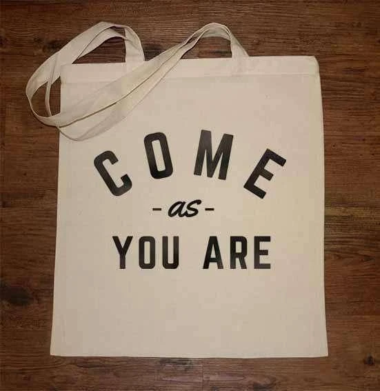 This design features the lyrics “Come as you are”, from the Nirvana song Come as you are.