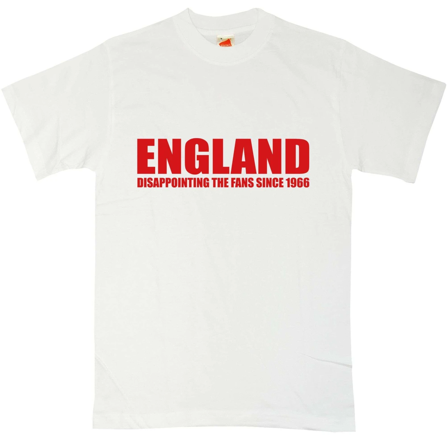 This t-shirt expresses the feeling of the nation right now, with the slogan “England – disappointing the nation since 1966”. No matter what happens, we all believe deep down that the lads can do something great when they cross that white line. Thats probably why it hurts so much when they prove time and again that they are decidedly average at best! This is a 100% cotton tee. Can the England boys conquer the world and bring home the cup this time?
