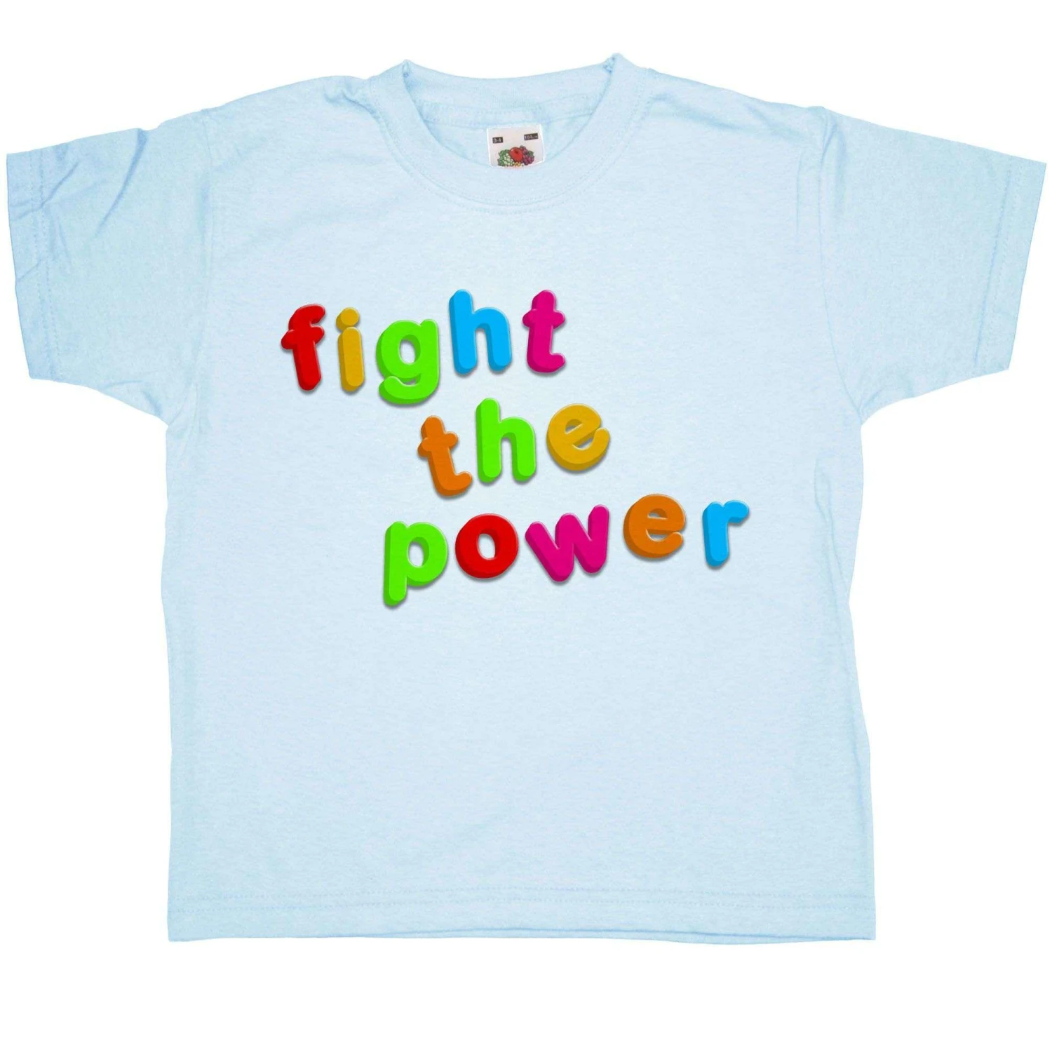 This kids t-shirt features a design which looks as though it is made up of multi coloured fridge magnets. Has the slogan “Fight the Power” which usually is a political statement but when worn by a kid it can probably be read as “Fight the Parents”! This is a funny 100% cotton kids t shirt.