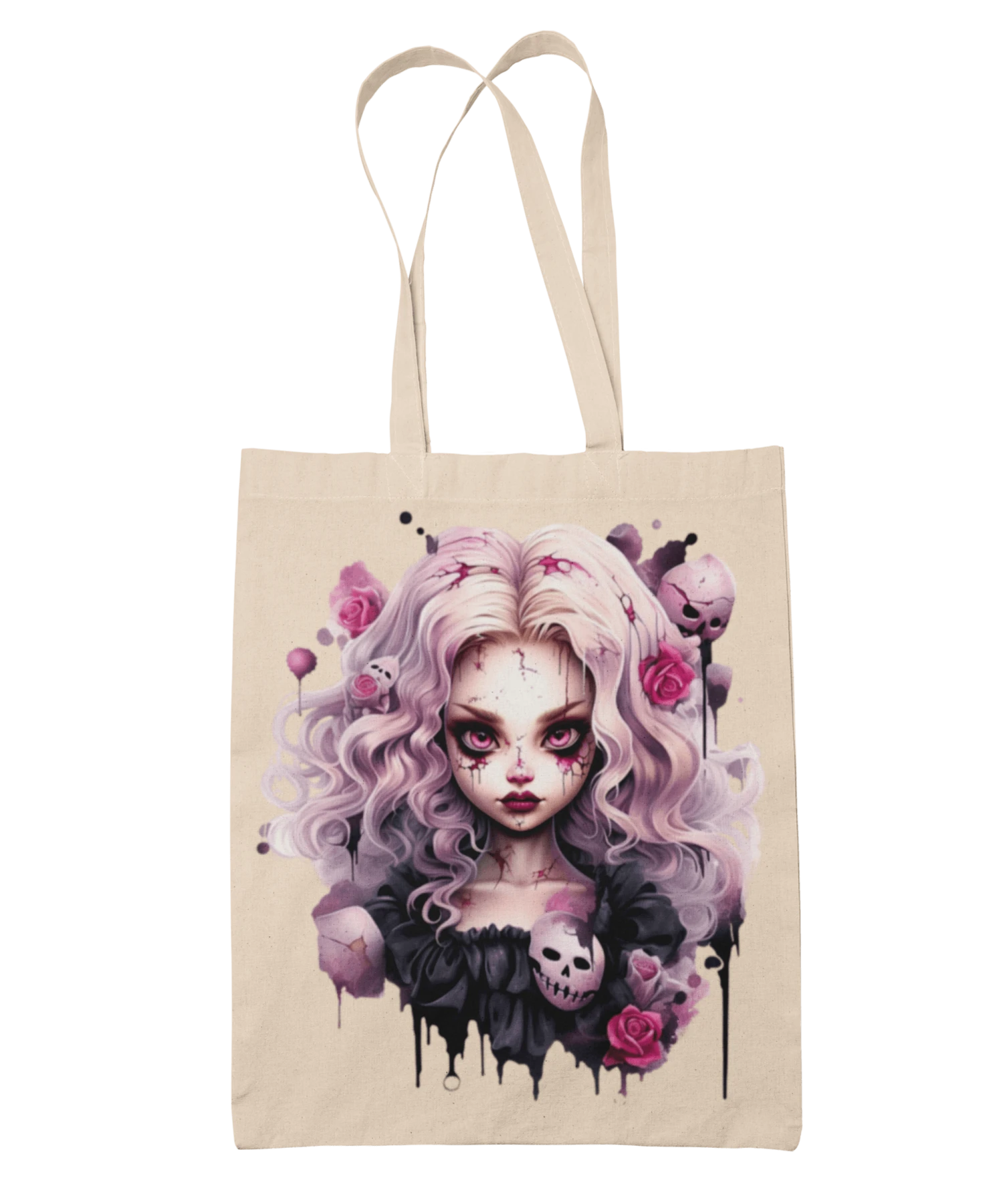 Inspired by the most famous doll in the world. This Gothic Barbie Doll tote bag, with its ghoulish, horror theme fan-based design, will showcase your sense of humour, gothic tendencies, and love of all things surrounding this remarkable doll.