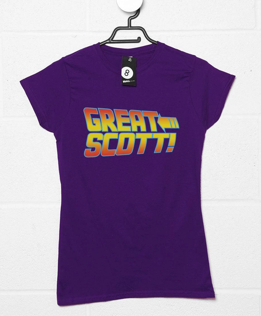 Great Scott! This BTTF inspired ladies t-shirt features the favourite saying of the man who must be the most brilliant scientist of all time – Doc Emmett Brown. Having solved the mystery of time travel, Doc Brown will be remembered as one of the greats. Almost as memorable is the Doc’s famous saying: ‘Great Scott!’ which he often says when shocked. Show your love for Marty’s partner-in-time with this Back To The Future inspired ladies tee. Not official.