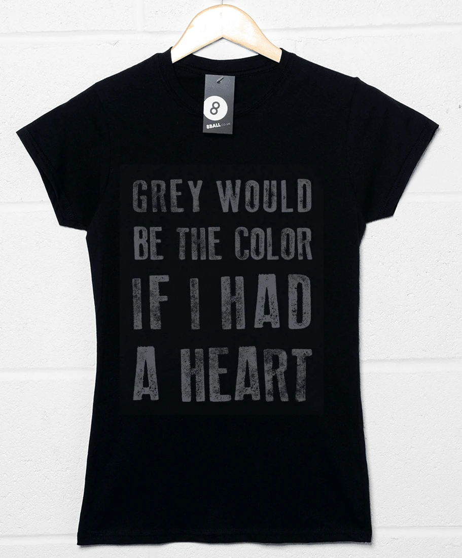 This t-shirt features lyrics from the song Something I Can Never Have, with an retro, distressed-style print that says: “Grey Would Be the Colour if I Had a Heart”.