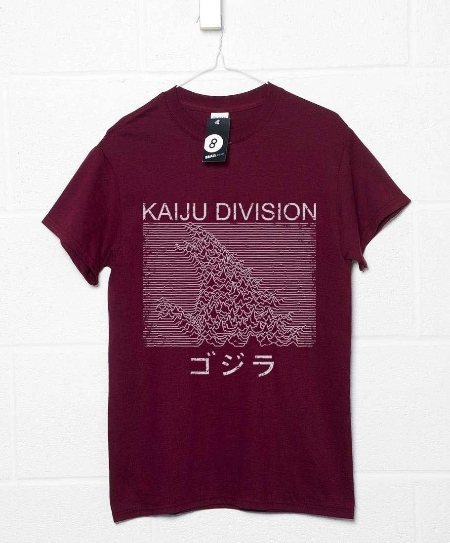 This T-Shirt features a mashup of Godzilla and the Joy Division album, Unknown Pleasures’ Cover art.