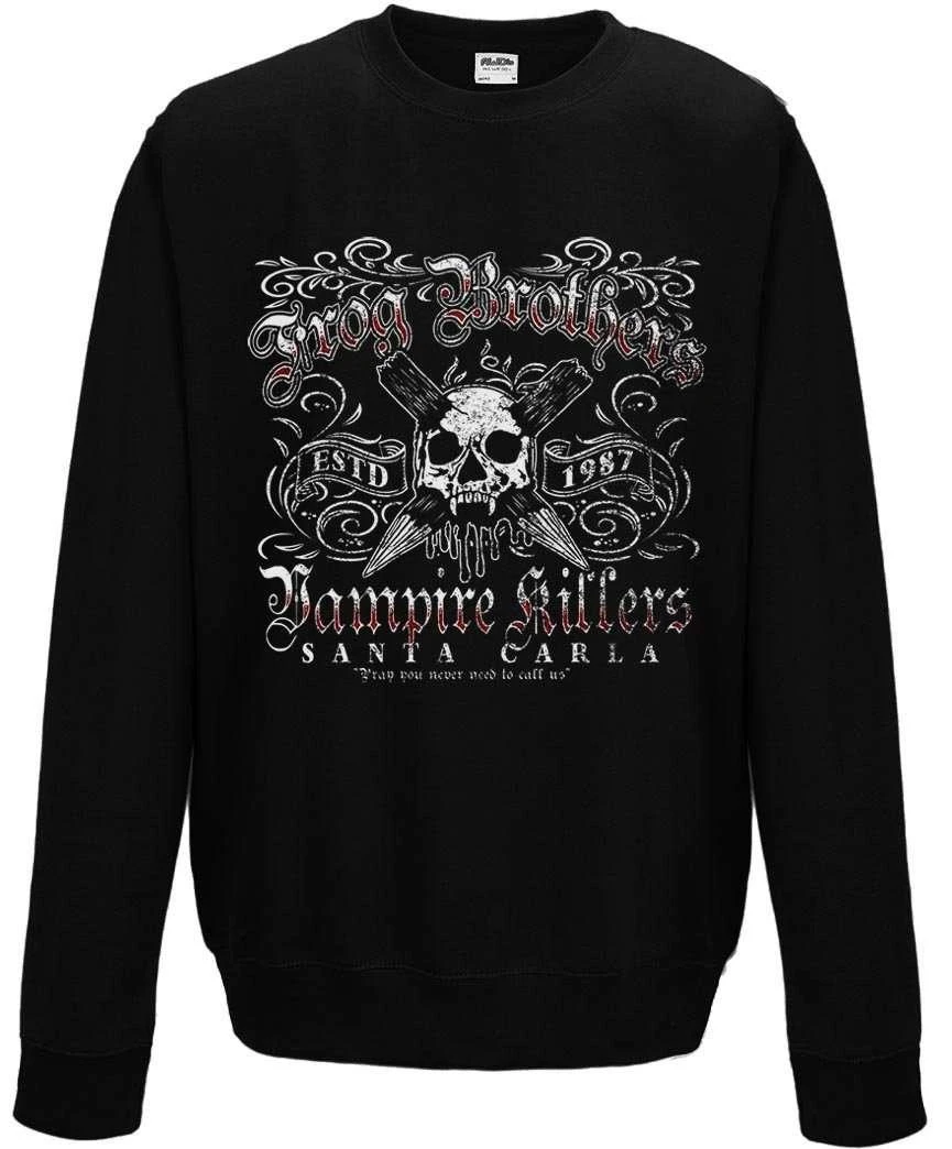 Do you have a Vampire Problem? Do you Live in Santa Carla? If yes then you need the Frog Brothers. Inspired by the 1987 film The Lost Boys, this hoodie/sweatshirt will warn any vampires that you are not to be messed with. Please note this is not an officially licensed product.