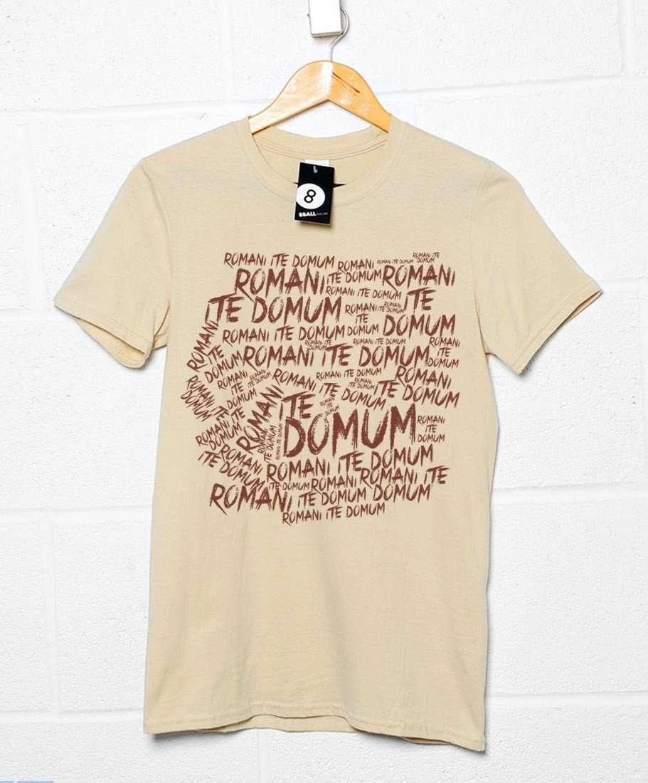 This men’s funny t-shirt features the anti Roman scribbling of Brian from Monty Pythons Life of Brian with the words “Romani Ite Domum” this was the slogan that Brian writes on the walls of the Jerusalem Palace to prove himself worthy to be a member of the group, as he finishes he gets caught by a Latin Teacher (John Cleese) who instead of killing him, corrects his sloppy grammer making him write it 100 times before sunrise.