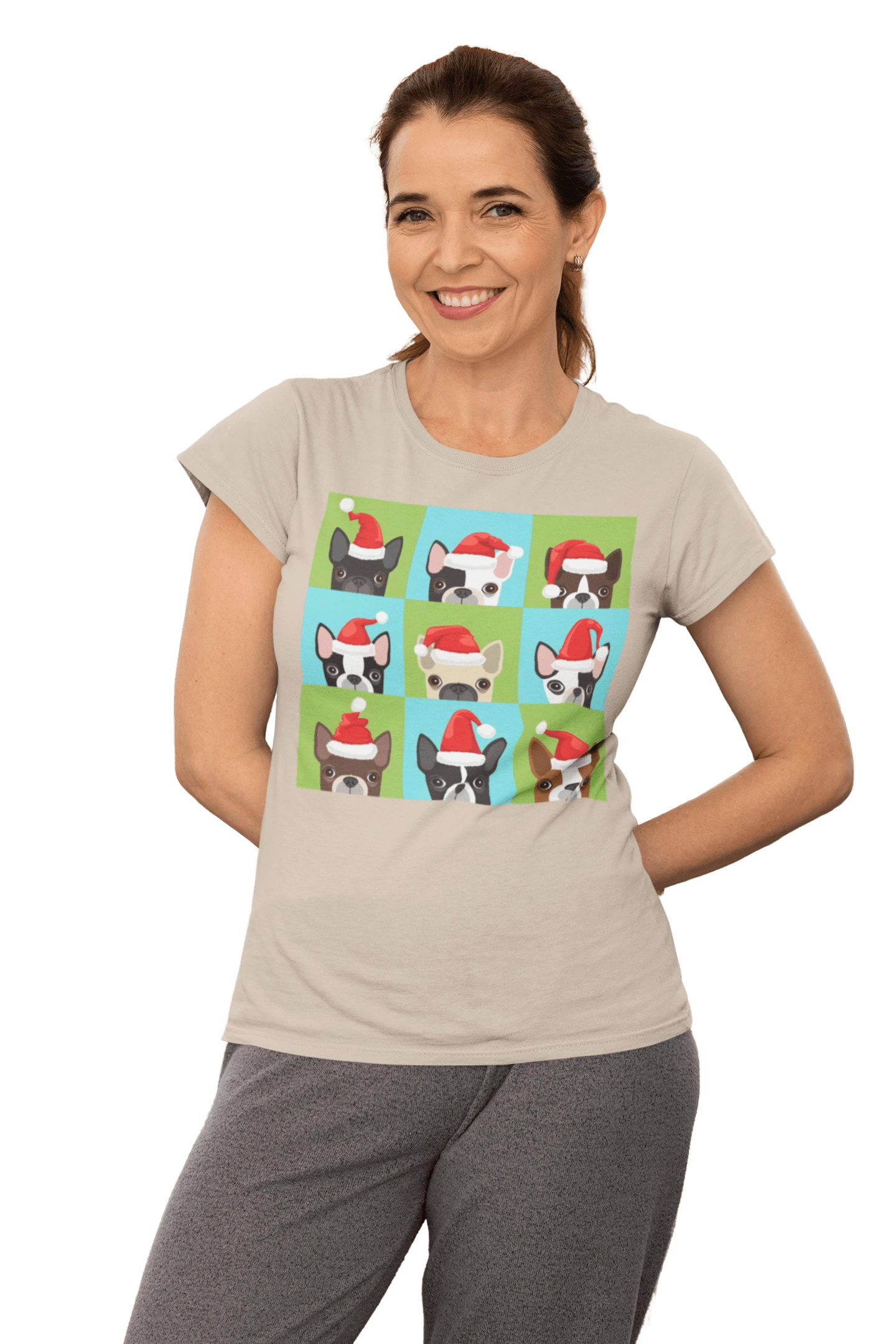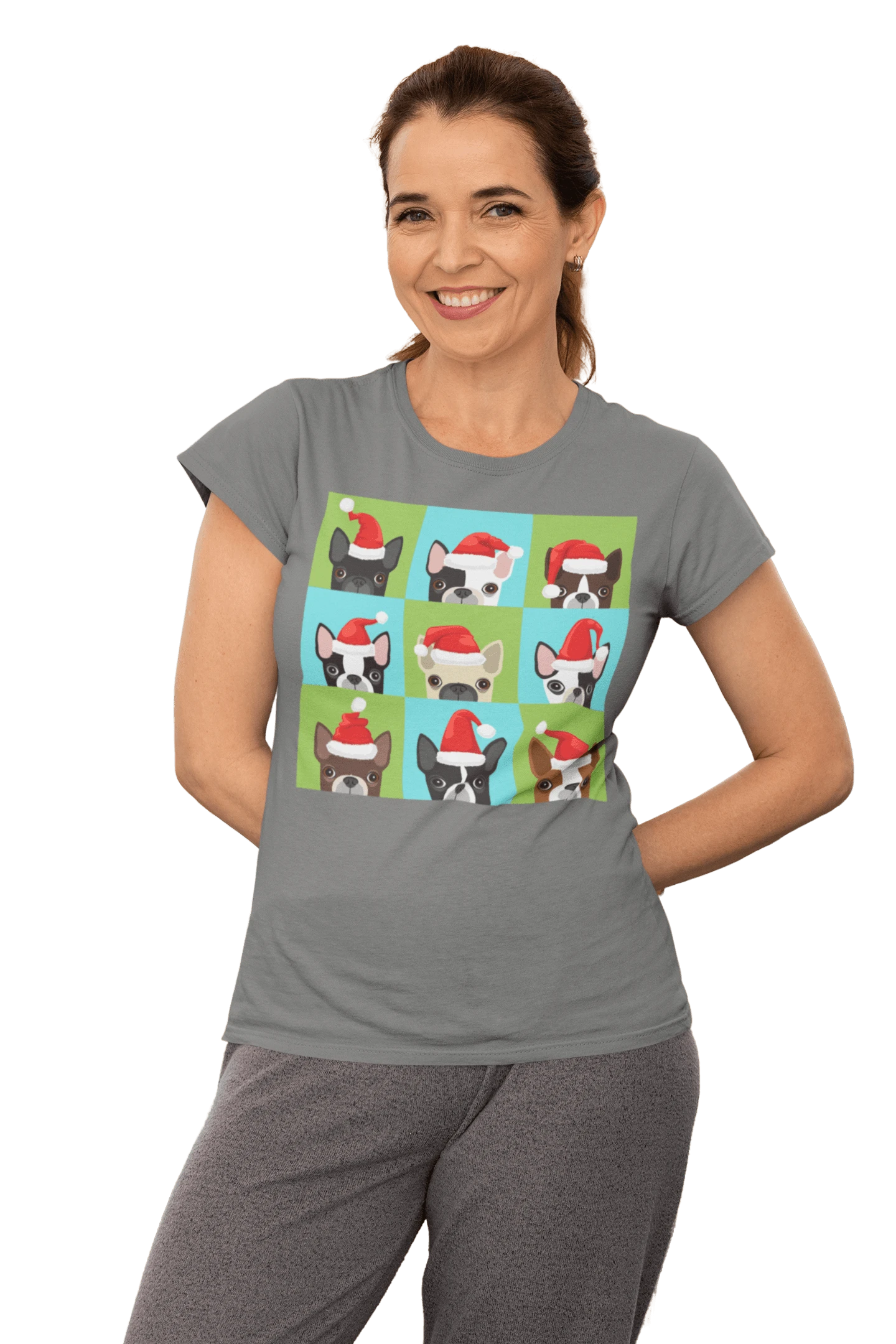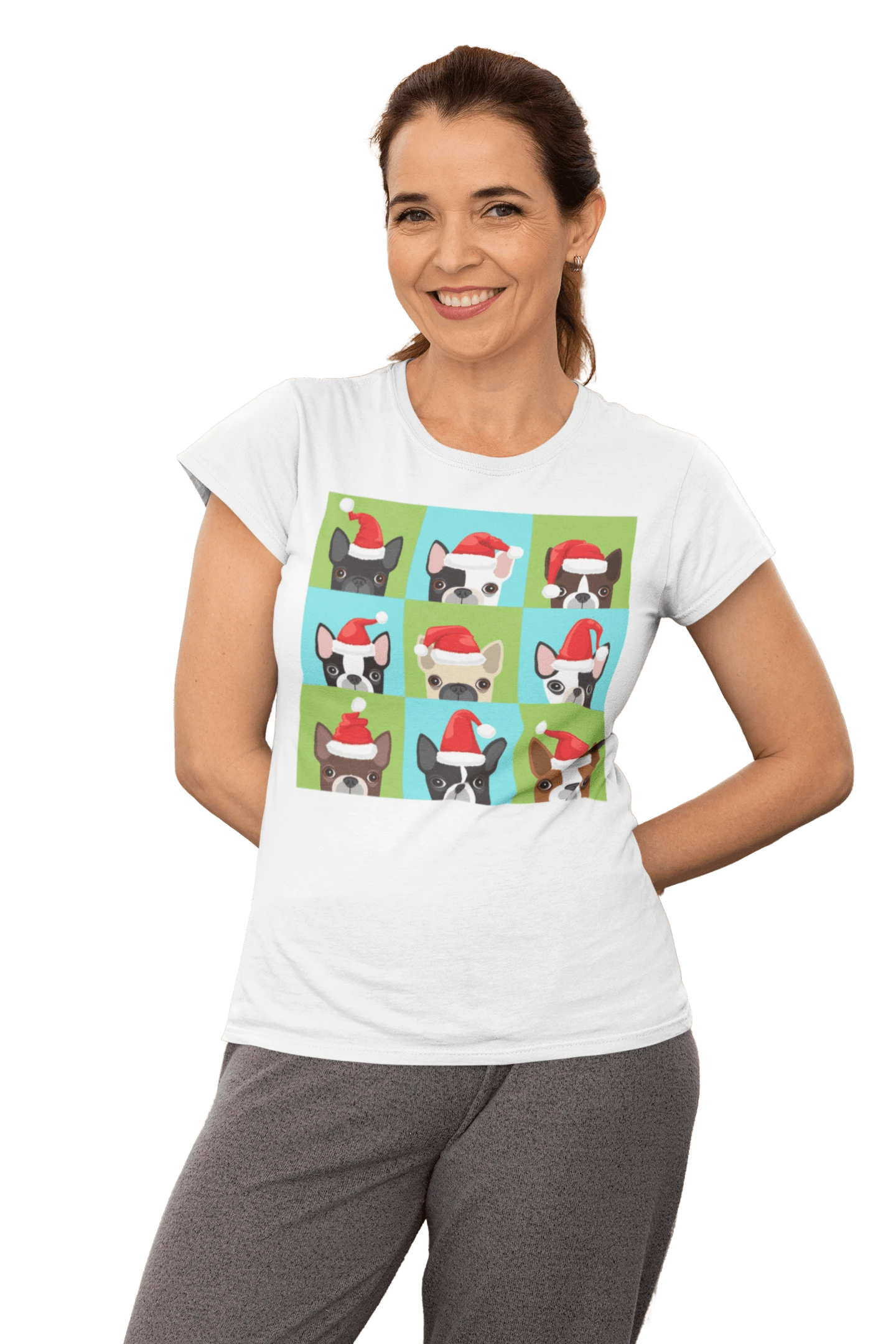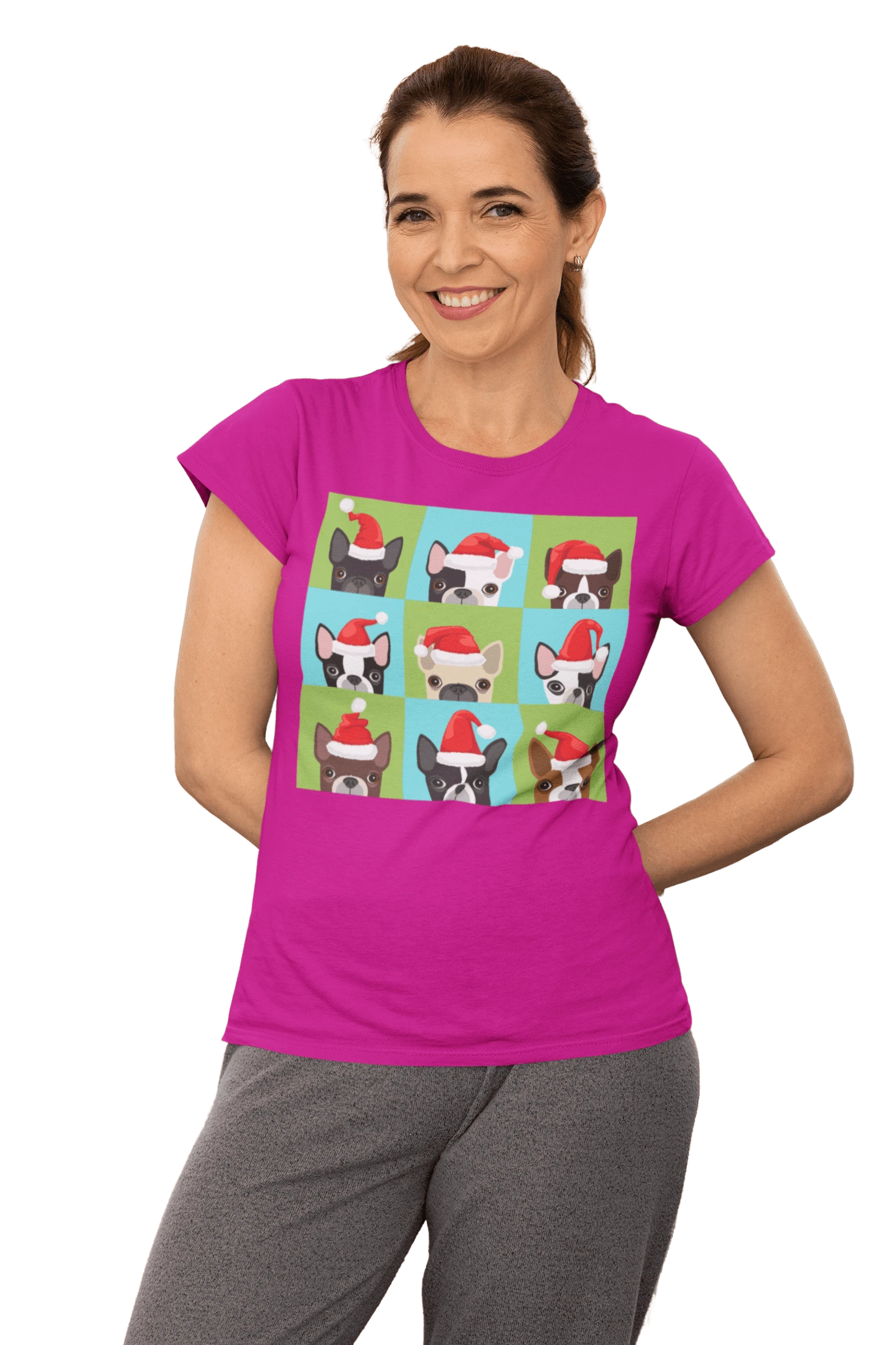 Perfect for the dog-loving pug owner in your life. Exclusive to 8 Ball T-Shirts this Christmas ladies fit t-shirt design with pugs in Santa hats is fantastic for all who love their pug.