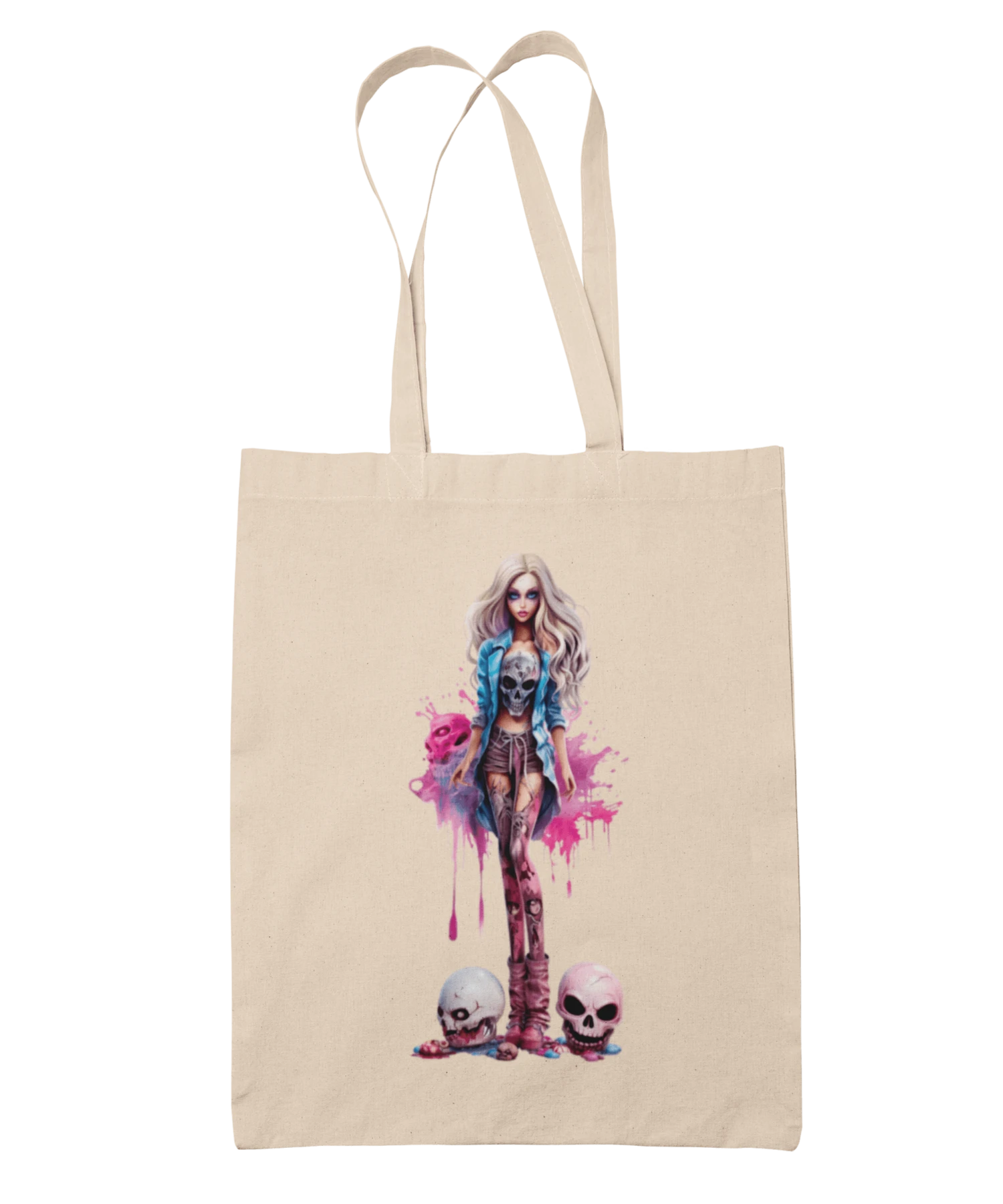 Inspired by the most famous doll in the world. With its ghoulish, horror theme fan-based design, this Skull Rocker Barbie Doll tote bag will showcase your sense of humour, gothic tendencies, and love of everything surrounding this remarkable doll.