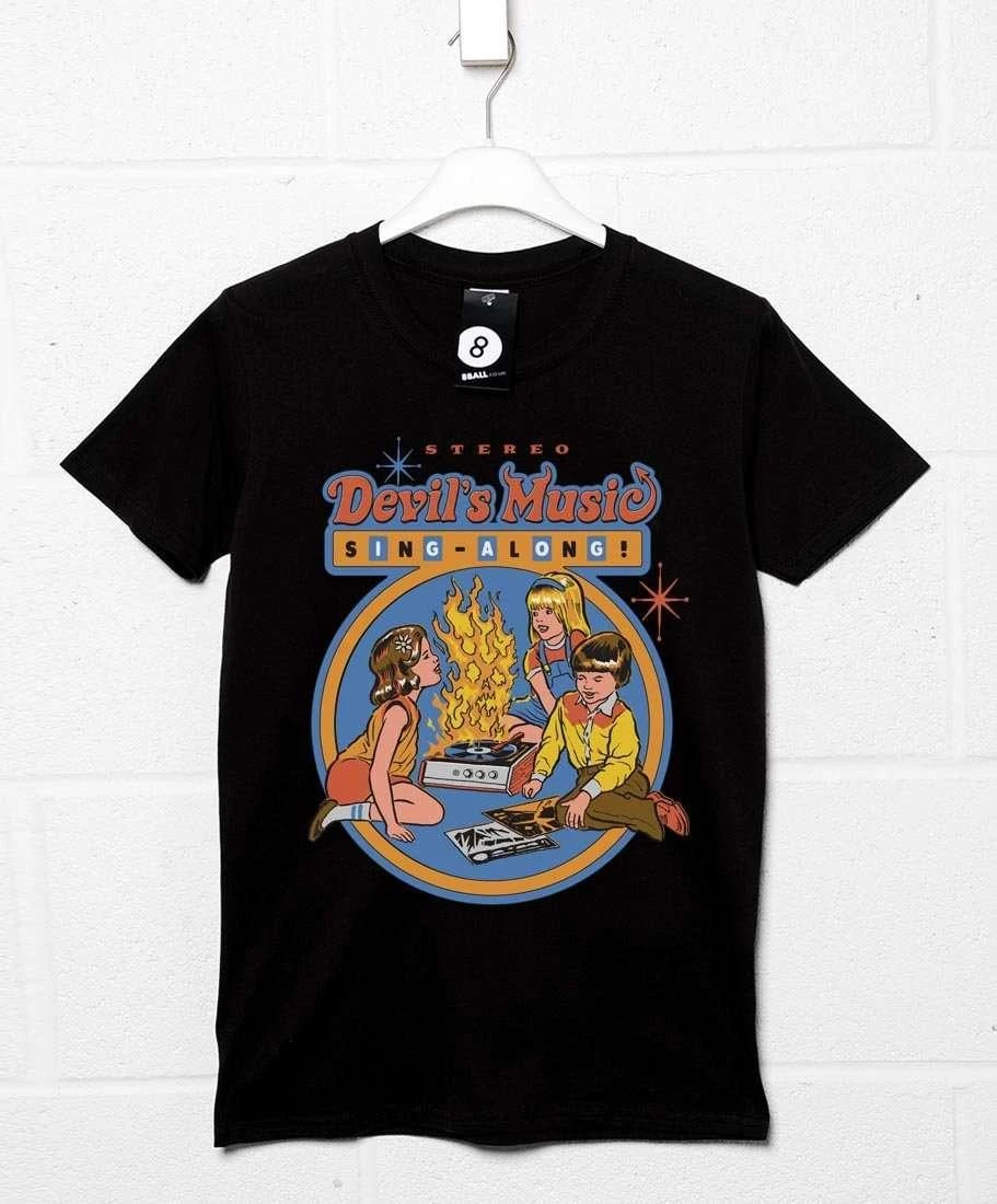 Sure, God might be a great guy and all that, but all the best bands are affiliated with the Devil! From the king of funny retro design, Steven Rhodes, this tee has an image showing some kids listening to ‘Devils Music’ on their record player, which is bursting into flames (naturally).